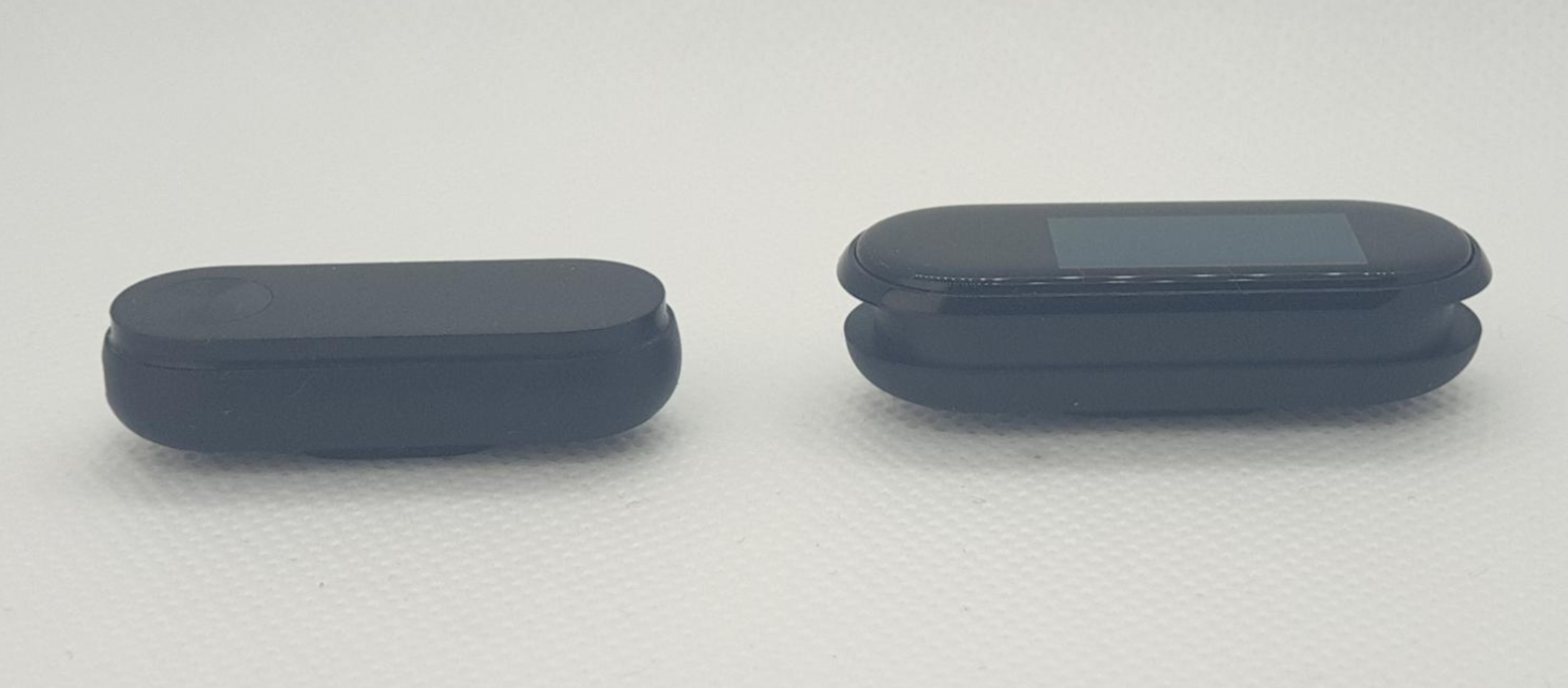 미밴드2에 비해 더 두툼해진 모습과 가운데 홈이 파여서 밴드에 더 잘 결착되도록 한 디자인이 보이네요.